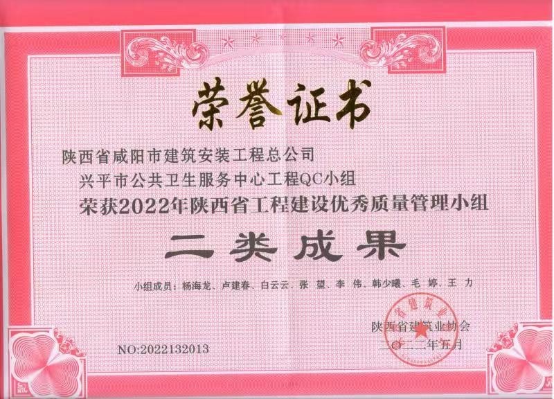 2022年度QC小組活動(dòng)成果證書(shū)